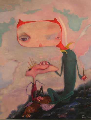 "Bumblefoot, Figment and Me" Acrylic on Canvas 24 X 30 February 2004